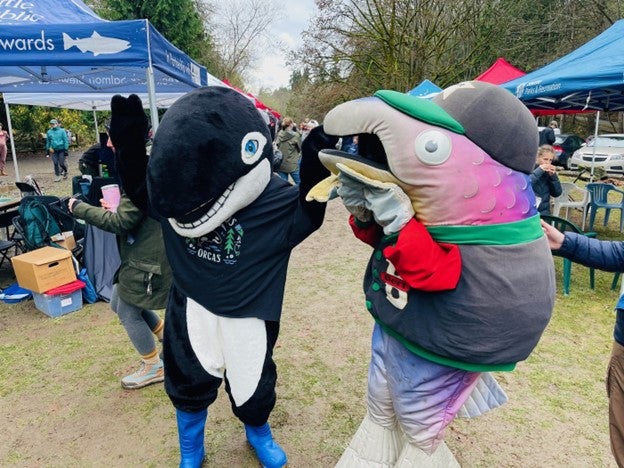 El personal escolar y VEPTSA colaboran para organizar una Reunión de Salmón en Viewlands durante la Celebración del Salmón de Pipers Creek. Este es un evento divertido al aire libre en Carkeek Park. Ollie the Orca, que es el propietario de Viewlands, estará allí. El famoso Bert the Salmon de Seattle también estará allí. Viewlands acogerá un puesto dirigido por voluntarios y líderes estudiantiles. Nuestro stand de Viewlands destacará el aprendizaje del salmón dirigido por los estudiantes e información sobre el programa salmon in schools y el arte del salmón. También habrá otros puestos con búsquedas del tesoro, proyectos artísticos, dulces y otras actividades educativas para toda la familia.